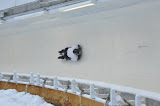Out of the groove. Don't skid...don't skid....sweet! Clean into one for the first time in four runs and picking up speed. I'm actually a little bit to the left....which hasn't happened yet so that's good. A little head steer...nice! Still no skids. I think they actually did clean some of the fucking snow off of the track! Holy Shit they actually did something.